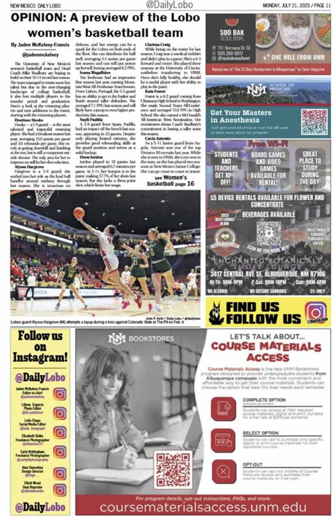 To extend communication beyond internal channels, I wrote press releases and secured an ad in the Daily Lobo, helping reinforce accurate messaging and broaden the program’s visibility ahead of the Fall 2025 launch.