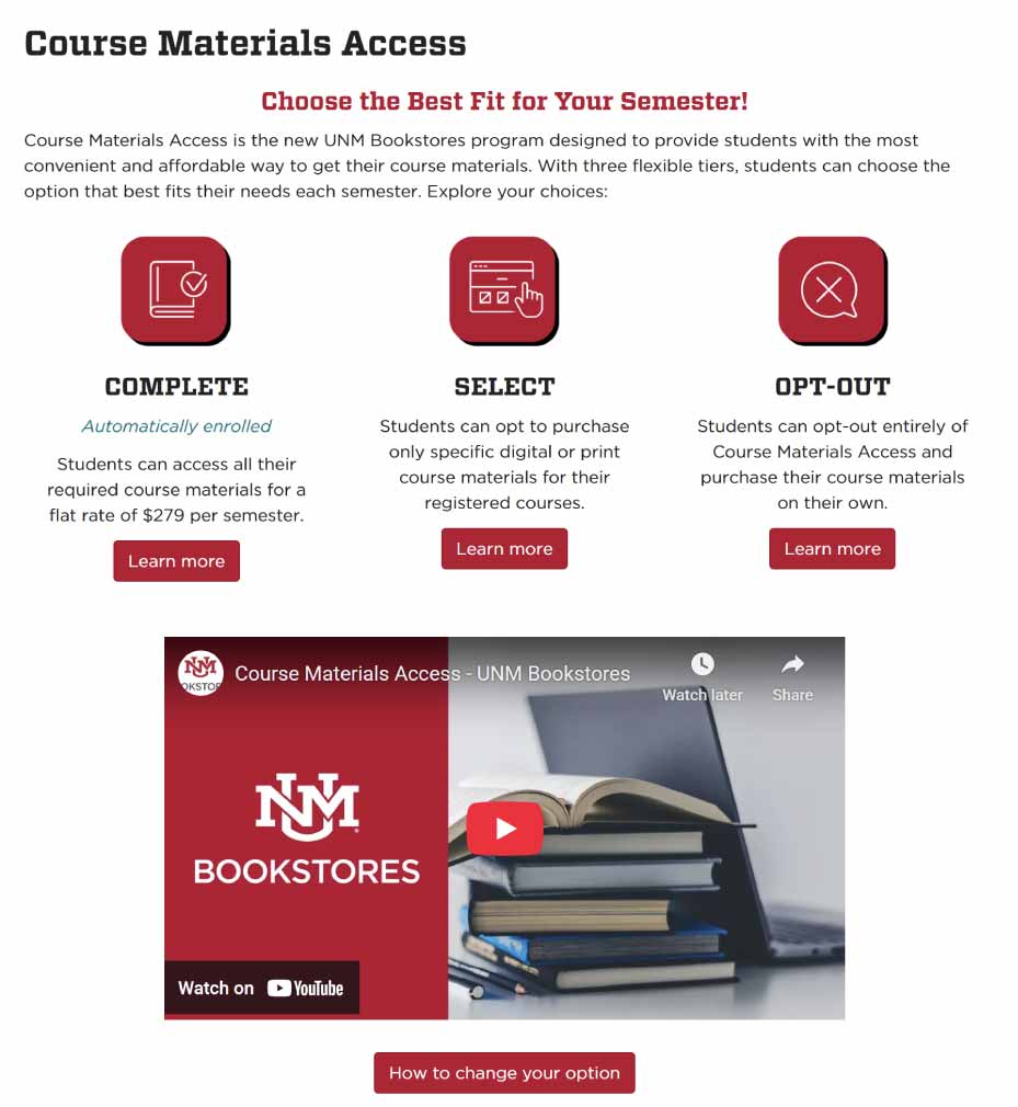 I developed the Course Materials Access website, from content strategy to page design and structure. Working closely with the Course Materials department, I created clear explanations of the three tiers, comprehensive FAQs, step-by-step opt-out instructions, and dedicated resources for faculty and students.